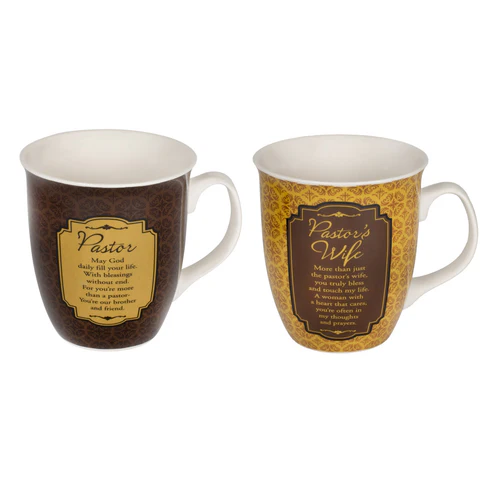 Pastor & Pastor’s Wife Filigree Medallion 16 Ounce Stoneware Coffee Mugs Boxed Set of 2