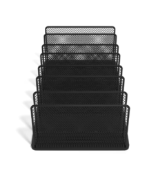 7-Compartment Wire Mesh File Organizer, Matte Black